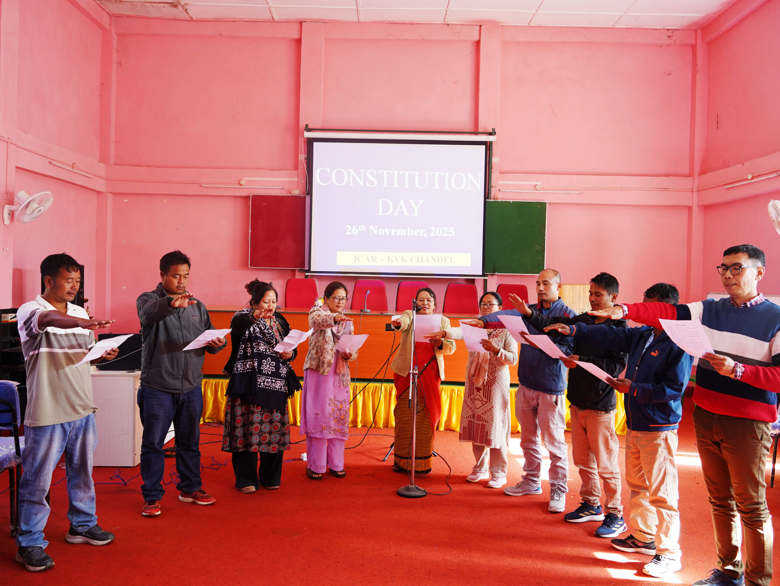 Constitution Day, or Samvidhan Diwas, was formally observed at the ICAR – Krishi Vigyan Kendra (KVK), Chandel, on November 26th. This annual commemoration marks the day the Constituent Assembly of India adopted the Constitution in 1949. The primary objective of the observance was not merely to fulfill a mandate but to deeply sensitize all staff members about the foundational framework, philosophy, and enduring spirit of the Constitution. Specifically for KVK Chandel, the goal was to integrate these high constitutional principles—especially those relating to justice, equality, and dignity—into the daily functioning of agricultural extension, research, and outreach activities, ensuring service delivery remains equitable and inclusive for the farming community. The entire event saw enthusiastic and active participation from all personnel.